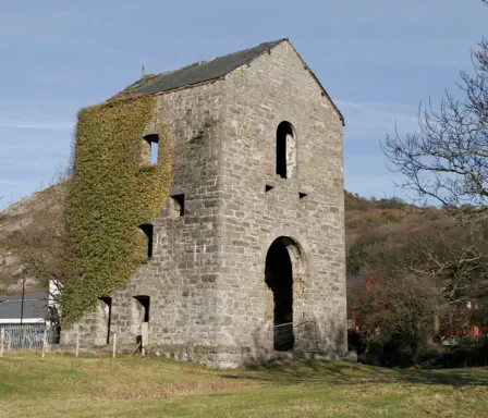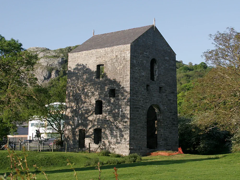 The Clive Engine House after restoration works in 2012, Graig Fawr and Marian Resort & Spa in the background