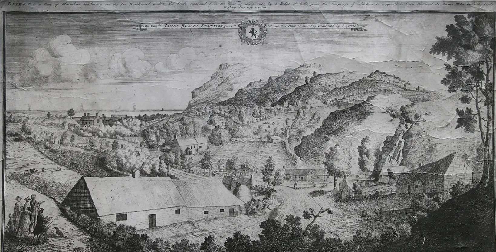 Engraving dating from the 1700s for James Stapleton who was connected with Bodrhyddan Hall - see