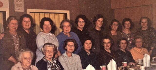 Mrs Renee (Kerfoot) Davies (Voel Coaches), ?, ?, ?, Mrs Jones (Foel Farm), Mrs Worthington, Mrs Annie Jones (papershop), Mrs Oakley.