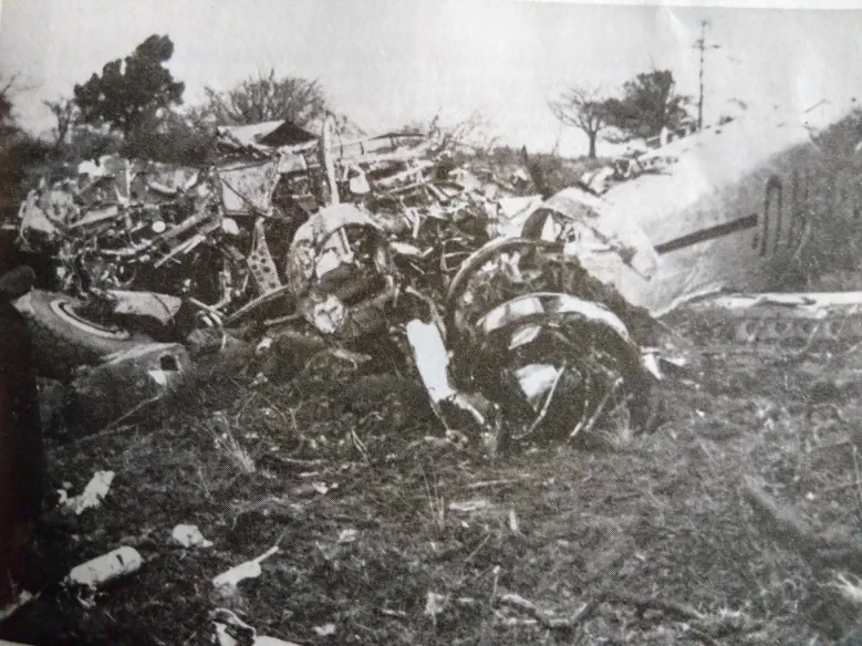 Accident InspectionAn inspection at the scene of the accident showed that the aircraft was travelling at high speed when it struck a group of fir trees growing approximately 10 ft below the summit of the thickly wooded Cwm Mountain, the height of which is 998 feet above sea level.Nine fir trees were snapped off 30 ft above the ground by the first impact.The wreckage trail spread down the eastern slope of the hill in a direction of 85 degrees M and extended for 400 yards, through bushes and undergrowth.The trail revealed continuous disintegration of wing, fuselage and undercarriage structure; the engines were torn from their mountings and small fires had been centred around burst fuel tanks.The trail culminated in the main wreckage where the rear portion of the fuselage was in an inverted position.Nearby lay the twisted debris of the pilot’s compartment, the port wing and undercarriage and the burnt out remains of the starboard wing.A technical examination showed that the undercarriage and flaps were retracted at the moment of impact and that the engines were running under power.The pilot’s altimeter was not recovered.