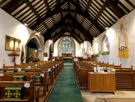 The chief glory of the church is the stained glass window above the altar. This has been described as the finest example of a medieval Jesse Window in North Wales.